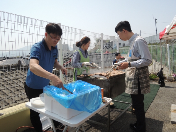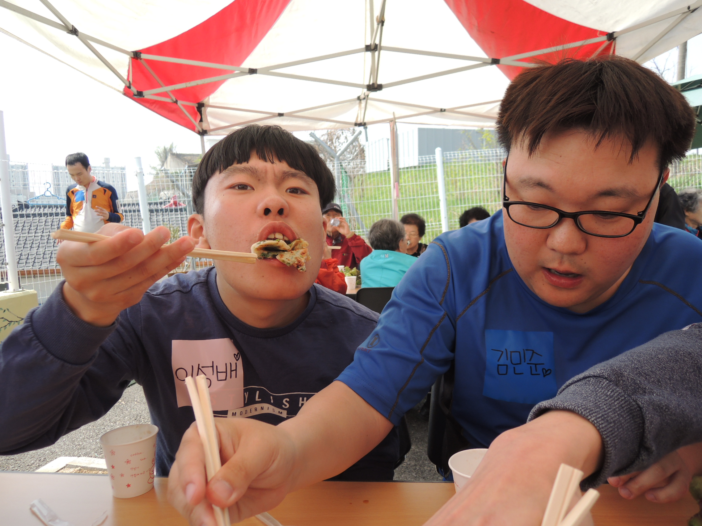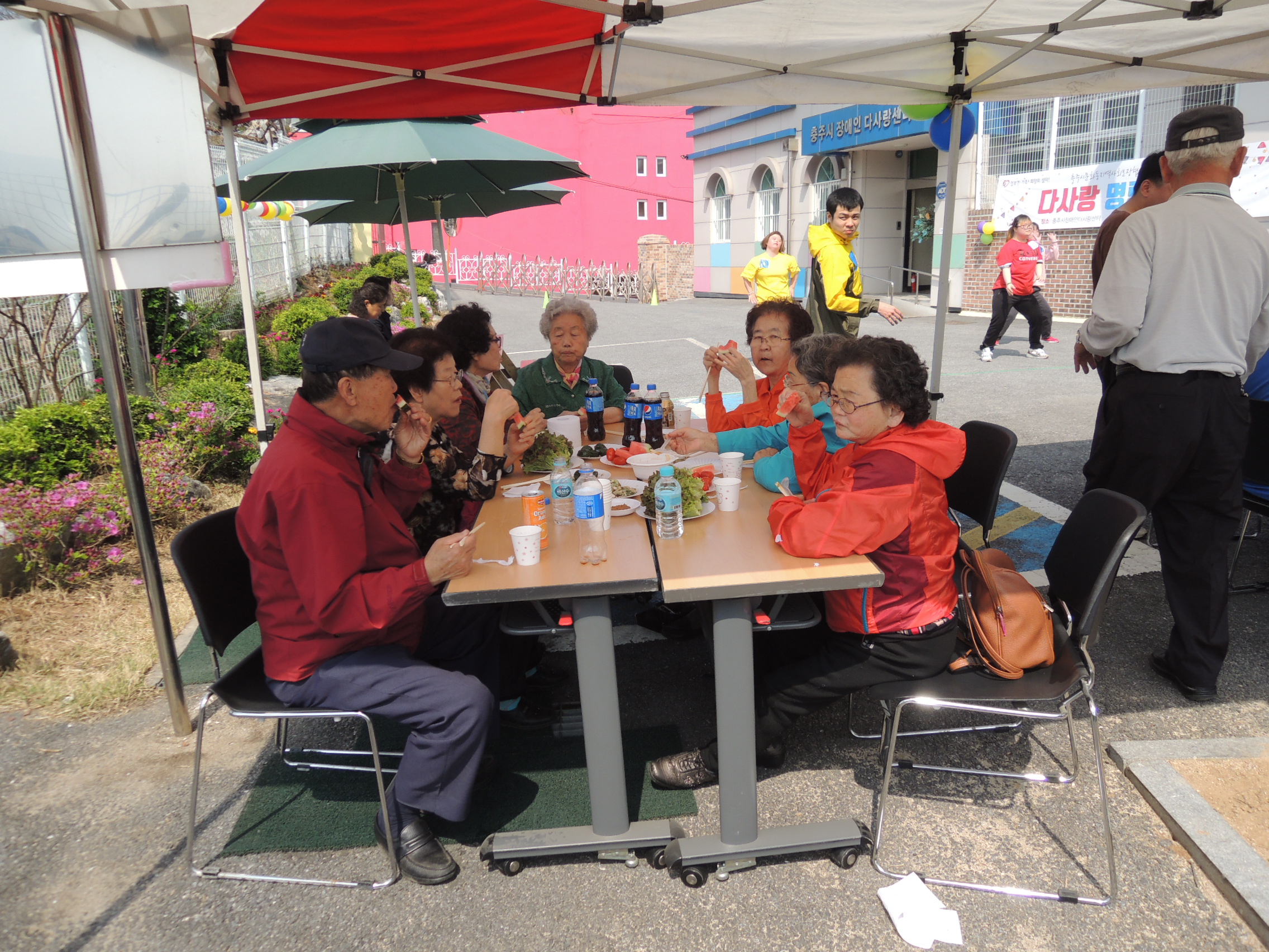 함께 땀흘리고 게임을 하며 즐거운 시간을 보냈고 조용했던 작은 마당이 시끌벅적 행복한 웃음소리로 채워졌습니다.