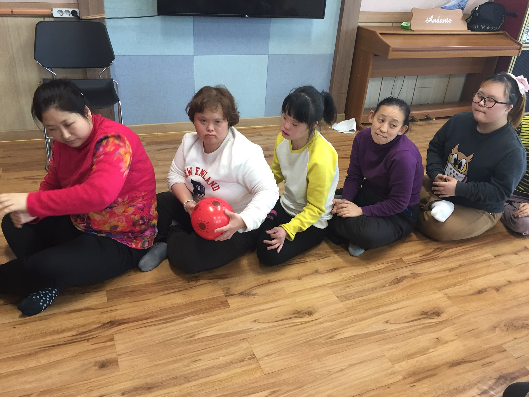 머리부터 발끝까지 스트레칭으로 몸도 풀어주고, 서로의 어깨를 주물러주고, 공을 이용한 놀이까지
