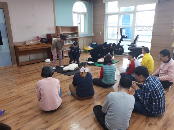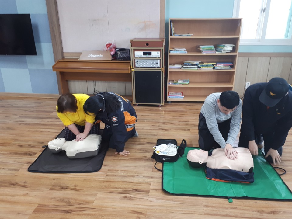 소방 대피 훈련과 더불어 심폐 소생술까지 직접 시현을 하여 이용인들의 실전 능력을