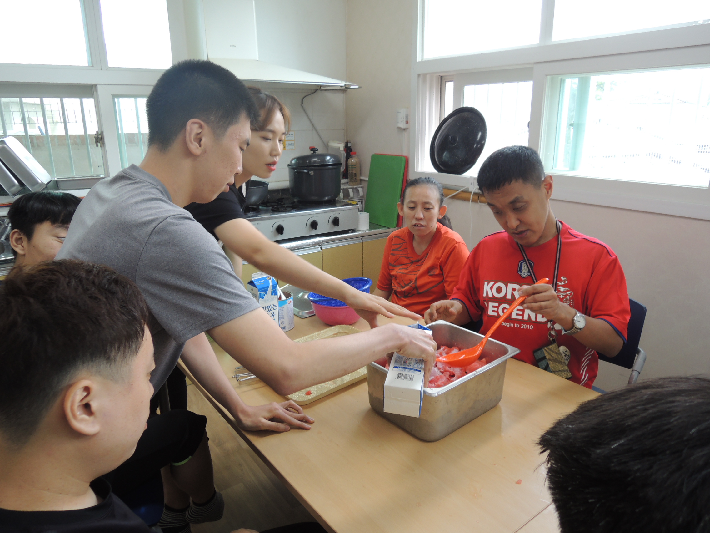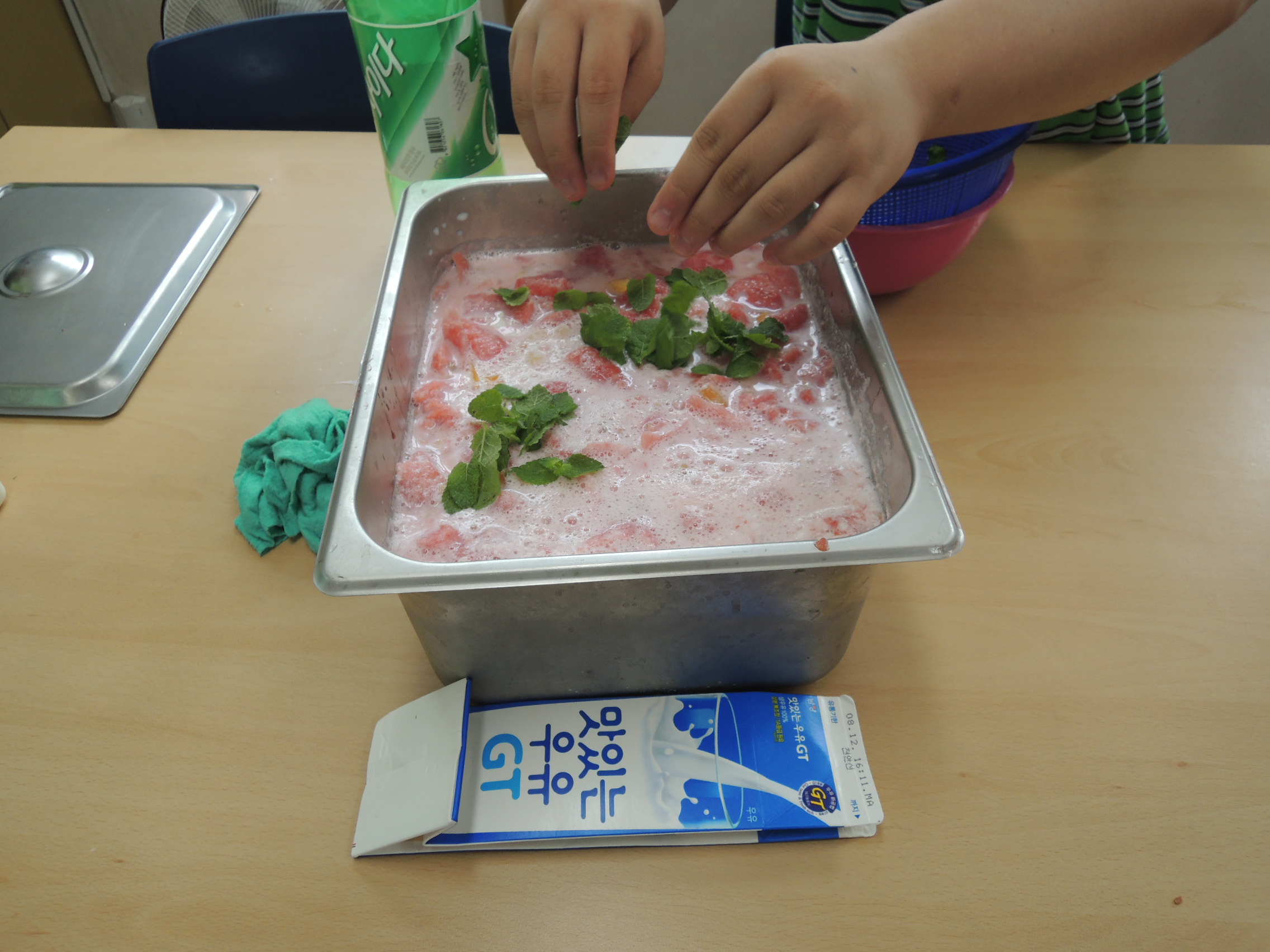 수박을 긁어 만든 시원한 화채만들기를 통해 즐거운 시간을 갖았습니다.