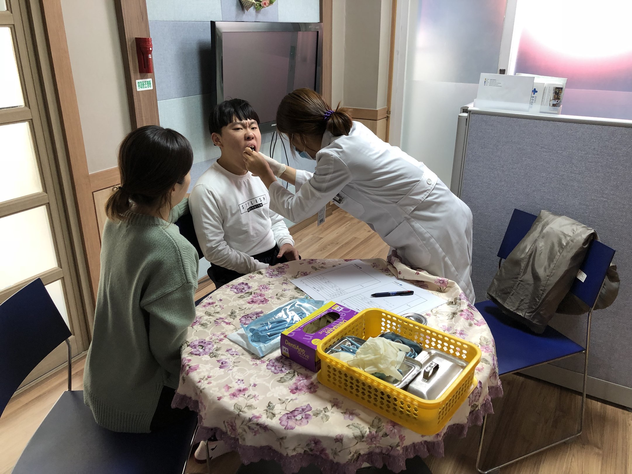 진료를 통해 이용인분들의 건강상태와 치아상태를 확인하였습니다.
