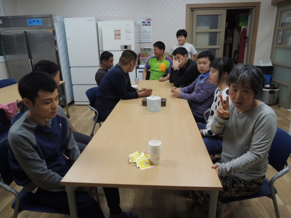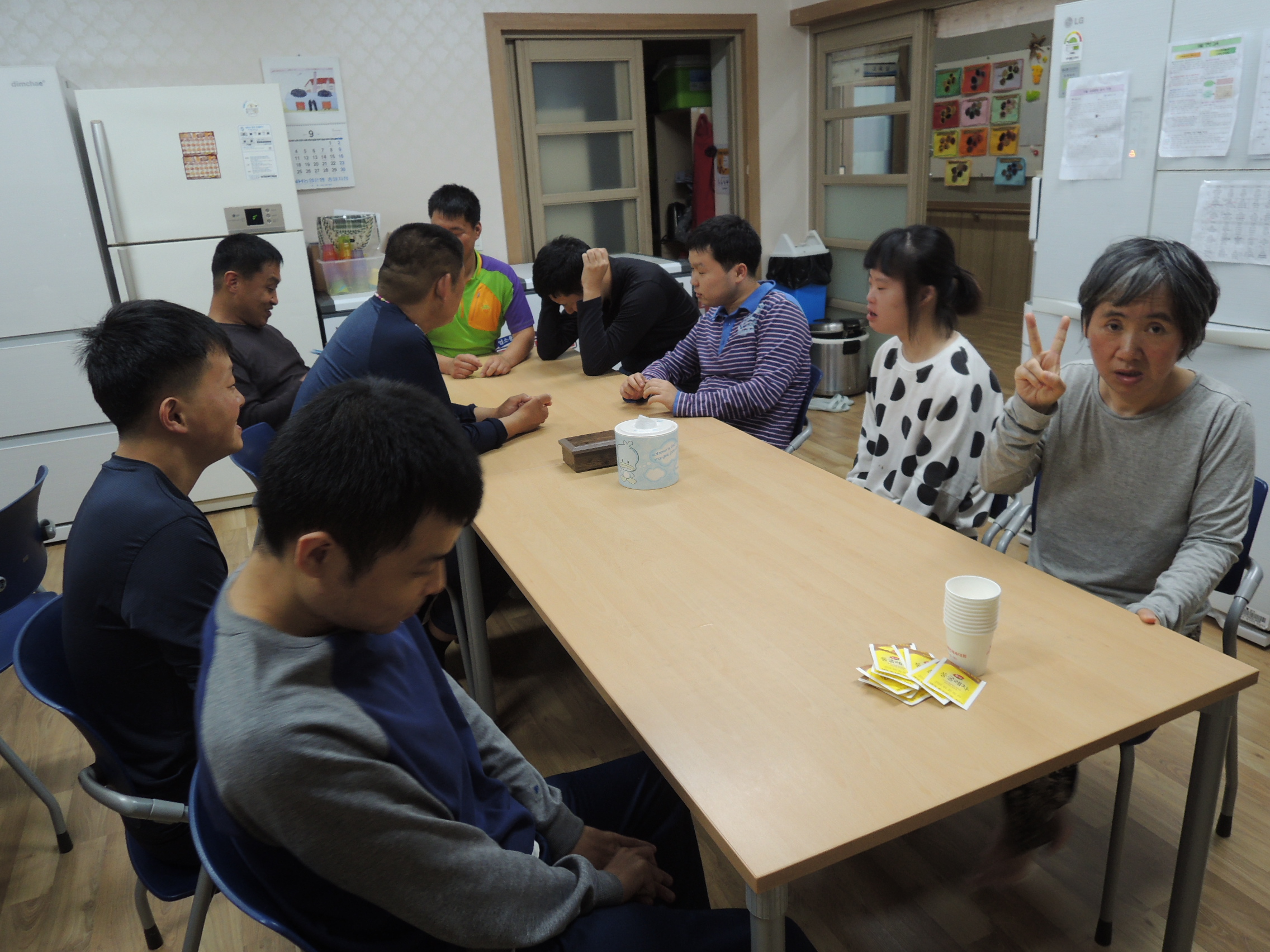 지난 9월 20일(수) 늦은 7시30분에 다사랑자치회가 있었습니다. 보호작업장에서 퇴근한 이용인까지 다사랑 단기보호를 이용하는 모든 이용인이 함께 한 자리였습니다. 둥글레차를 우려 마시느라 왔다갔다 약간은 어수선하기도 했지만, 자신들의 의견을 적극적으로 피력하기 위해 열변을 토하는 모습이었습니다. 다양한 안건들이 나왔지만 이번에는 컴퓨터 활용 방안과 개인 휴대폰 및 MP3 사용 절제, 주말 이용인 여가선용 건에 대한 의견을 중점으로 나누었습니다.