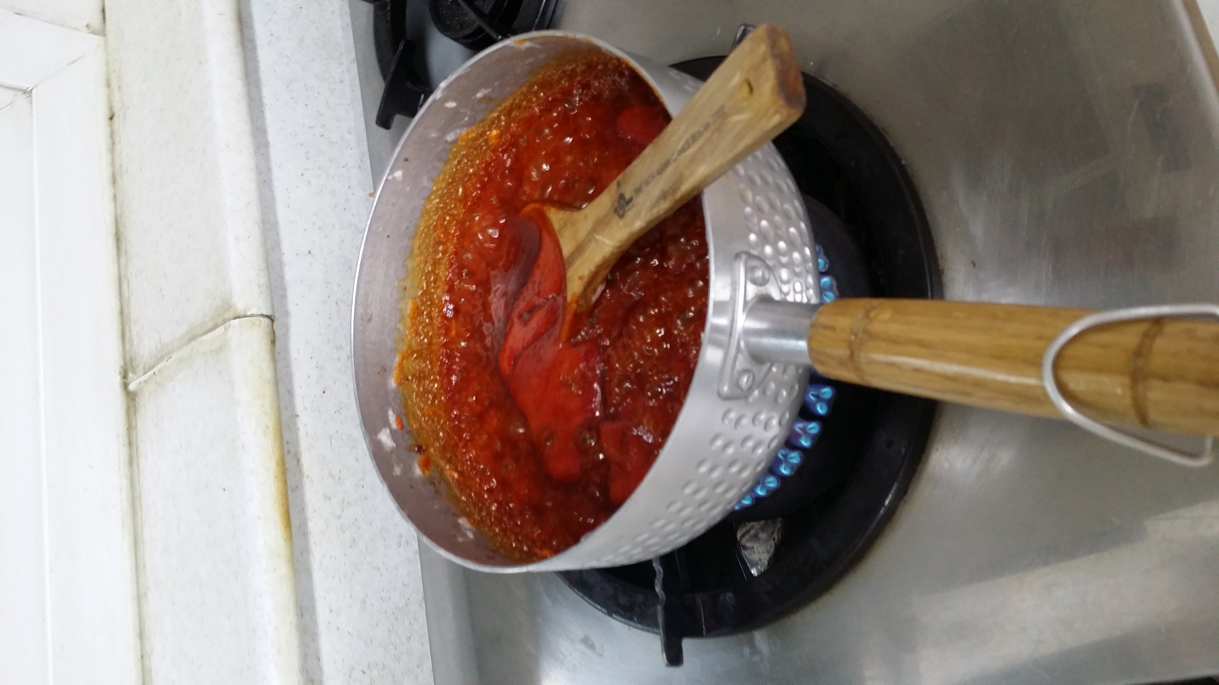새콤달콤한 고추장 소스에 발라