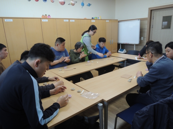 첫수업은 화석액자만들기로, 과학교실을 기다려왔던 이용인분들이 즐겁게 참여하였습니다.