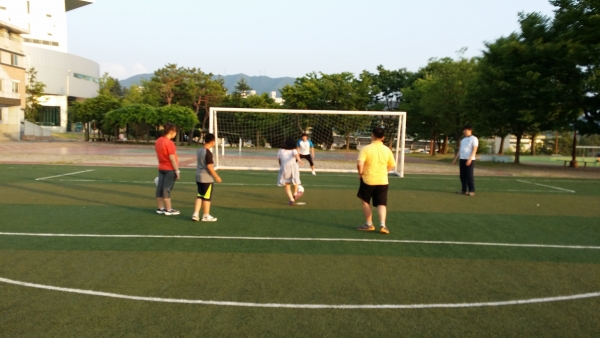 태권도시간에 호암지 산책및 청소년수련원 잔디구장에서 축구를 경기를 했습니다.