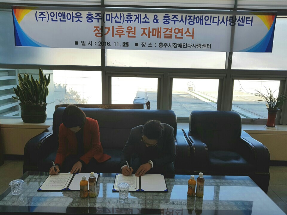 (주)인앤아웃 충주휴게소(창원방향)와 충주시장애인다사랑센터간에 협약식을