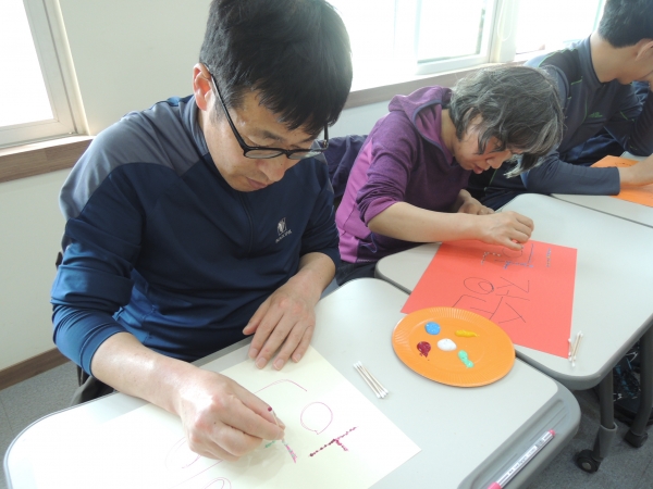 이용인분들의 마음이 소리가 미술로 자유롭게 표현되는 시간이라