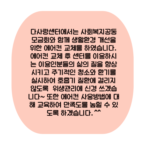 다사랑센터 생활환경 개선을 위한 에어컨 교체 작업 페이지 정보 작성자 유다솜 작성일24-09-04 19:10 조회660회 댓글0건 관련링크 본문 댓글목록 등록된 댓글이 없습니다. 이전글 다음글 목록