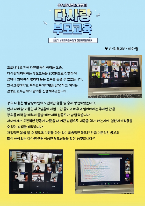 21년 7월호 (vol.40) 다사랑 뉴스레터 페이지 정보 작성자 최인규 작성일21-07-19 18:31 조회1,274회 댓글0건 관련링크 본문 댓글목록 등록된 댓글이 없습니다. 이전글 다음글 목록