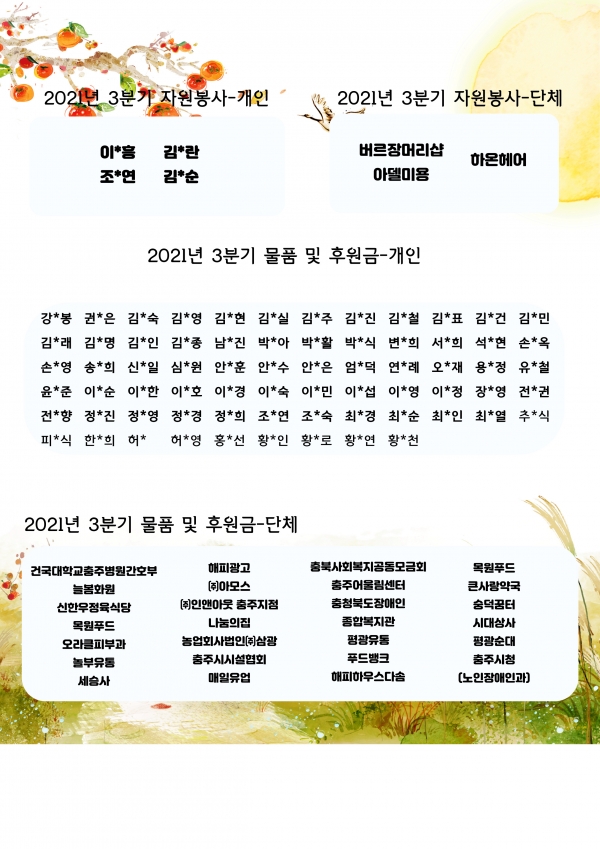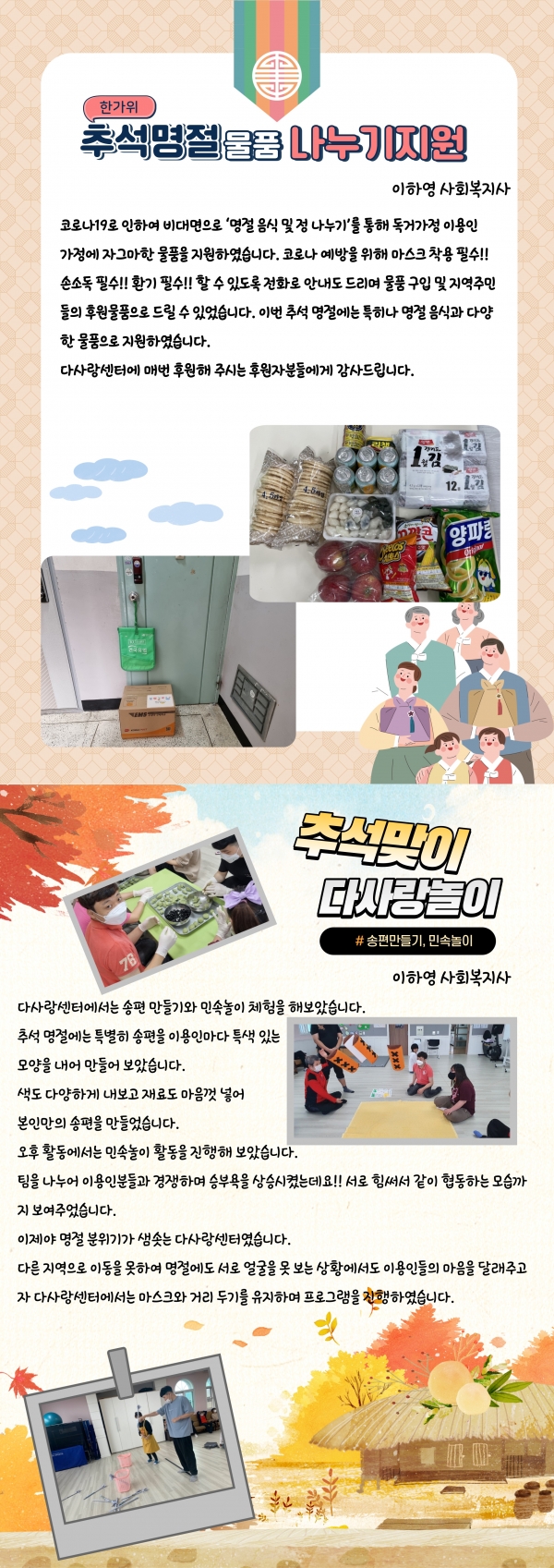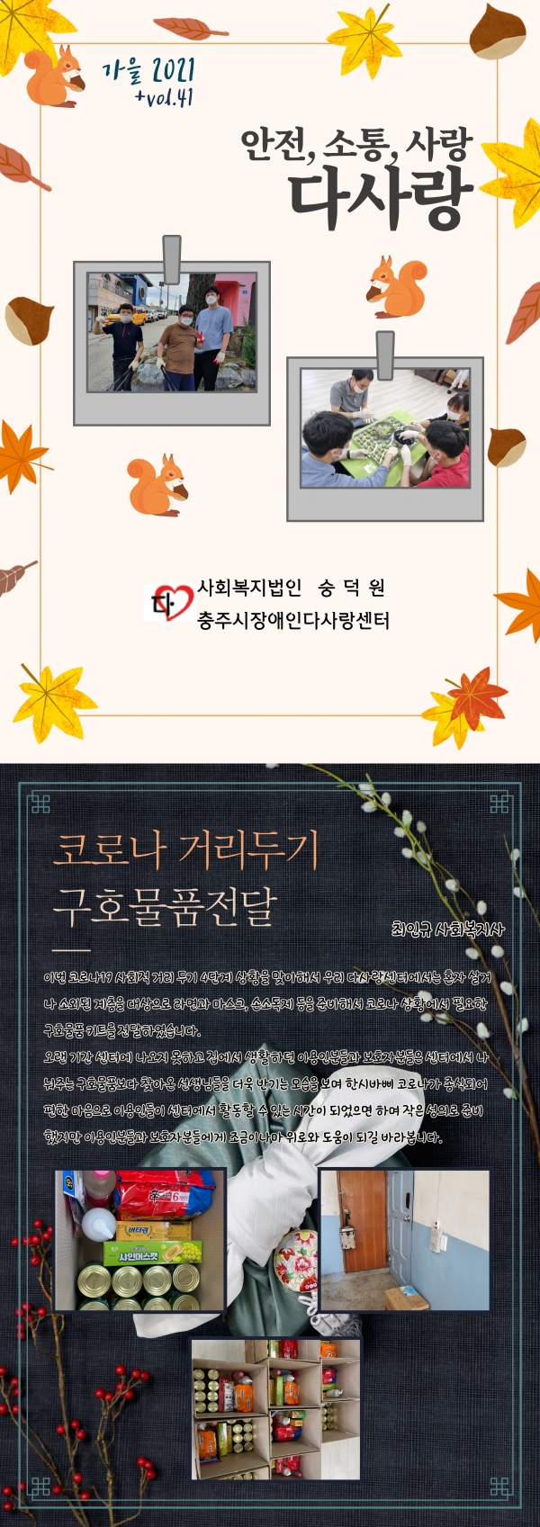 21년 10월호 (vol.41) 다사랑 뉴스레터 페이지 정보 작성자 최인규 작성일21-10-08 15:27 조회1,079회 댓글0건 관련링크 본문 댓글목록 등록된 댓글이 없습니다. 이전글 다음글 목록