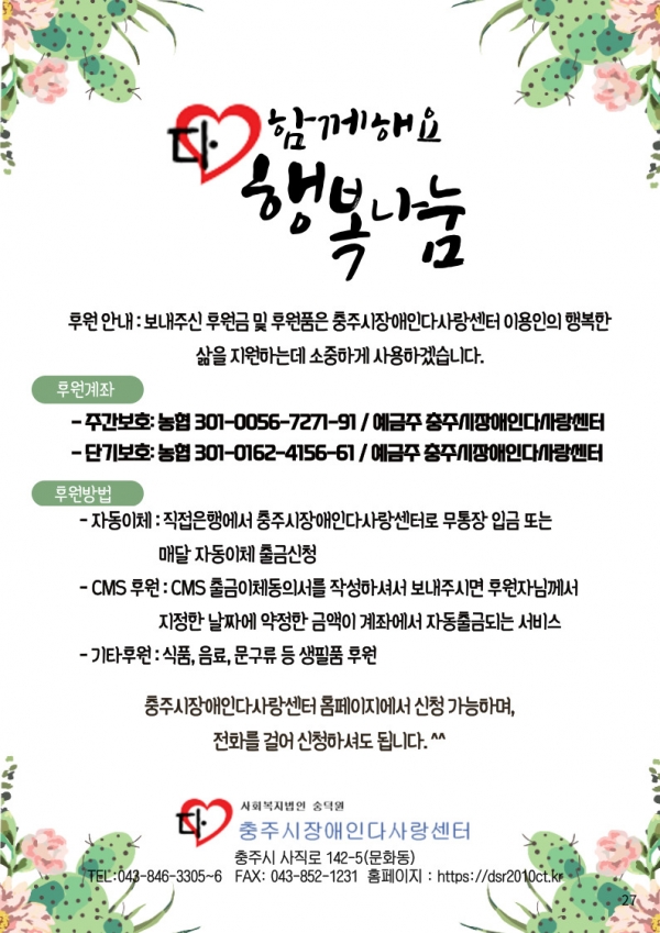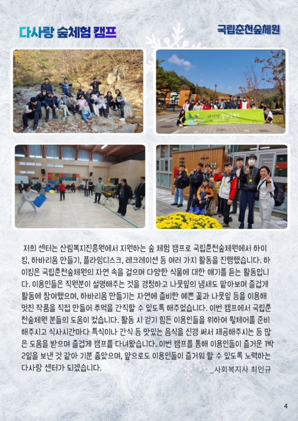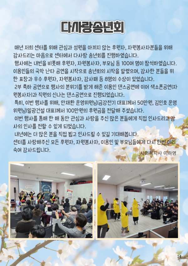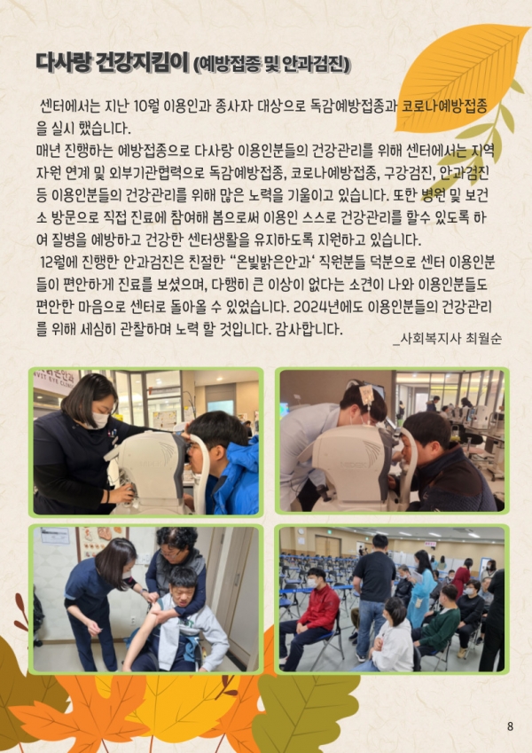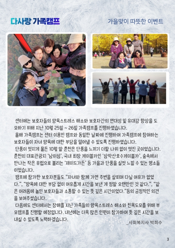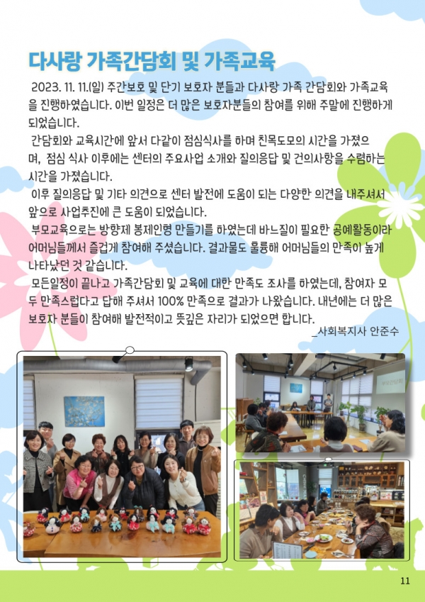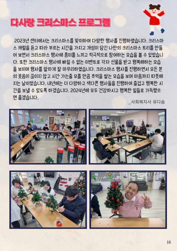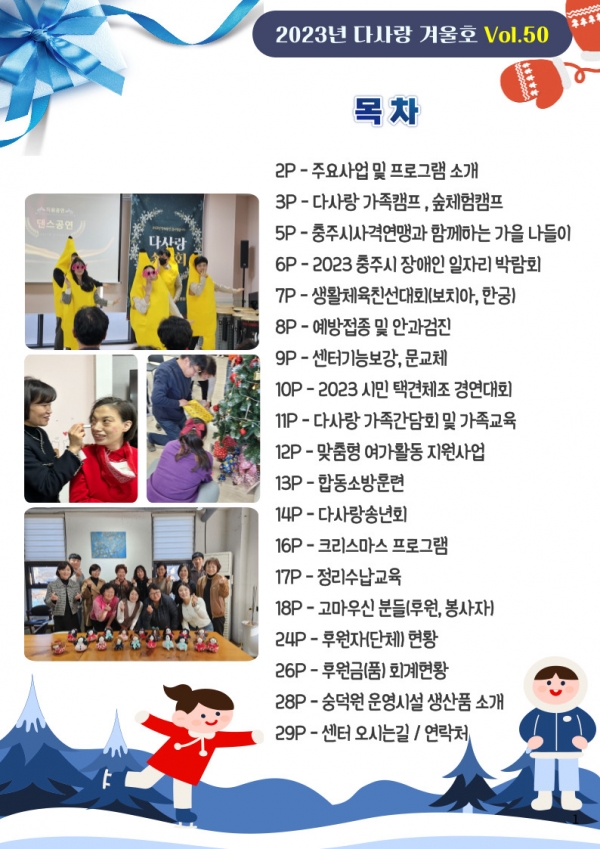 23년 겨울호 (vol.50) 다사랑 뉴스레터 페이지 정보 작성자 이재호 작성일24-01-09 04:08 조회658회 댓글0건 관련링크 본문 댓글목록 등록된 댓글이 없습니다. 이전글 다음글 목록