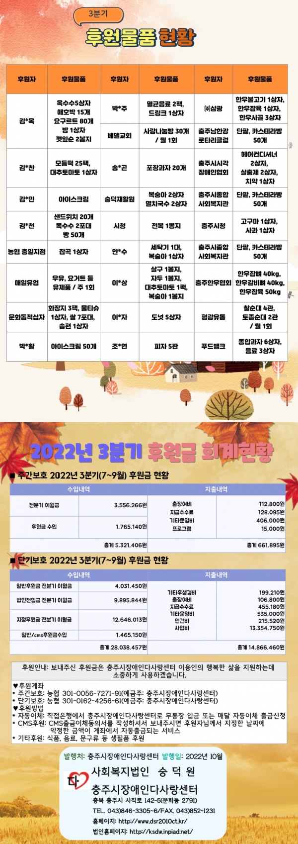 22년 10월호 (vol.45) 다사랑 뉴스레터 페이지 정보 작성자 최인규 작성일22-10-14 18:18 조회637회 댓글0건 관련링크 본문 3분기 다사랑센터 뉴스레터입니다. 많은 관심 부탁드립니다. 댓글목록 등록된 댓글이 없습니다. 이전글 다음글 목록