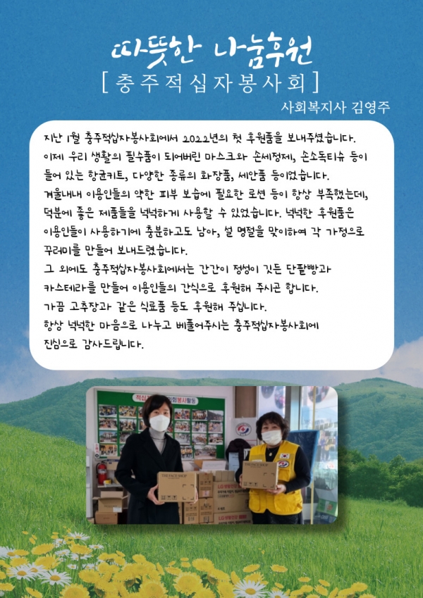 22년 4월호 (vol.43) 다사랑 뉴스레터 페이지 정보 작성자 최인규 작성일22-04-20 17:23 조회735회 댓글0건 관련링크 본문 댓글목록 등록된 댓글이 없습니다. 이전글 다음글 목록