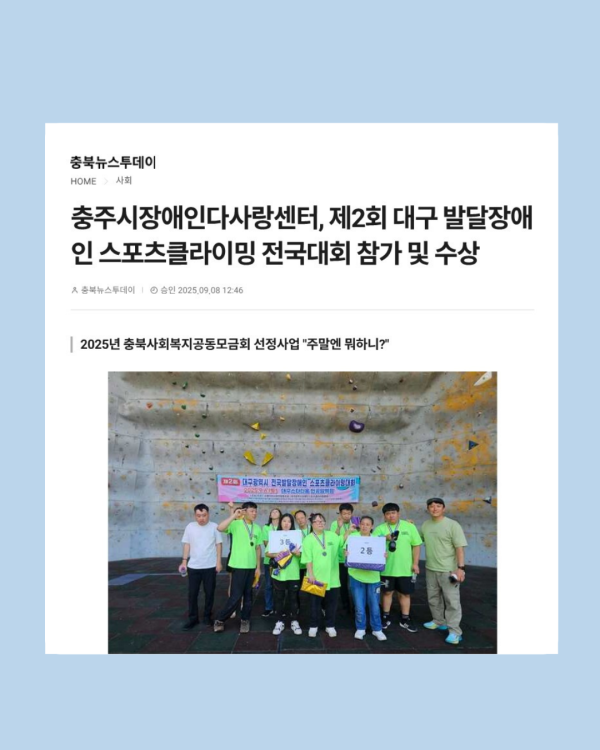충주시장애인다사랑센터가 ‘제2회 대구 발달장애인 클라이밍 전국대회’에 참가했습니다.